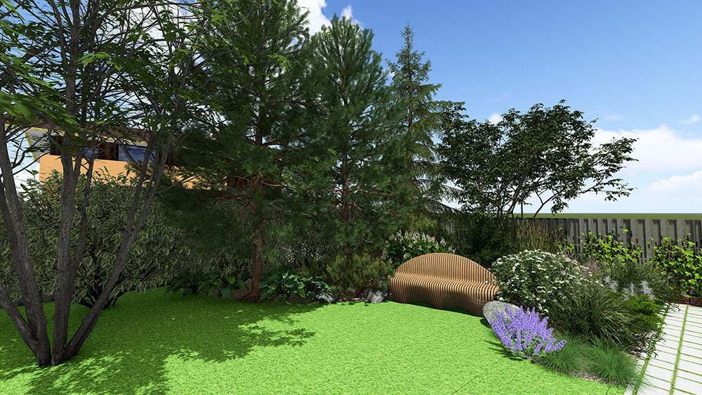 Результат: Защищенный от ветра и взглядов участок, где растения подобраны под сложные грунты и не требуют постоянных усилий.